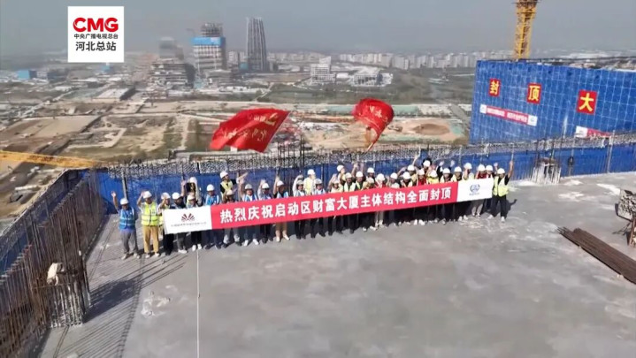 启动区财富大厦项目主体结构已顺利封顶,现在进入幕墙安装和内部装修,同步开展招商筹备,已有多家金融机构表达入驻意向。