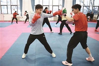国家拳击队在奥体中心进行冬季集训。 中国体育报记者 鹿麟摄